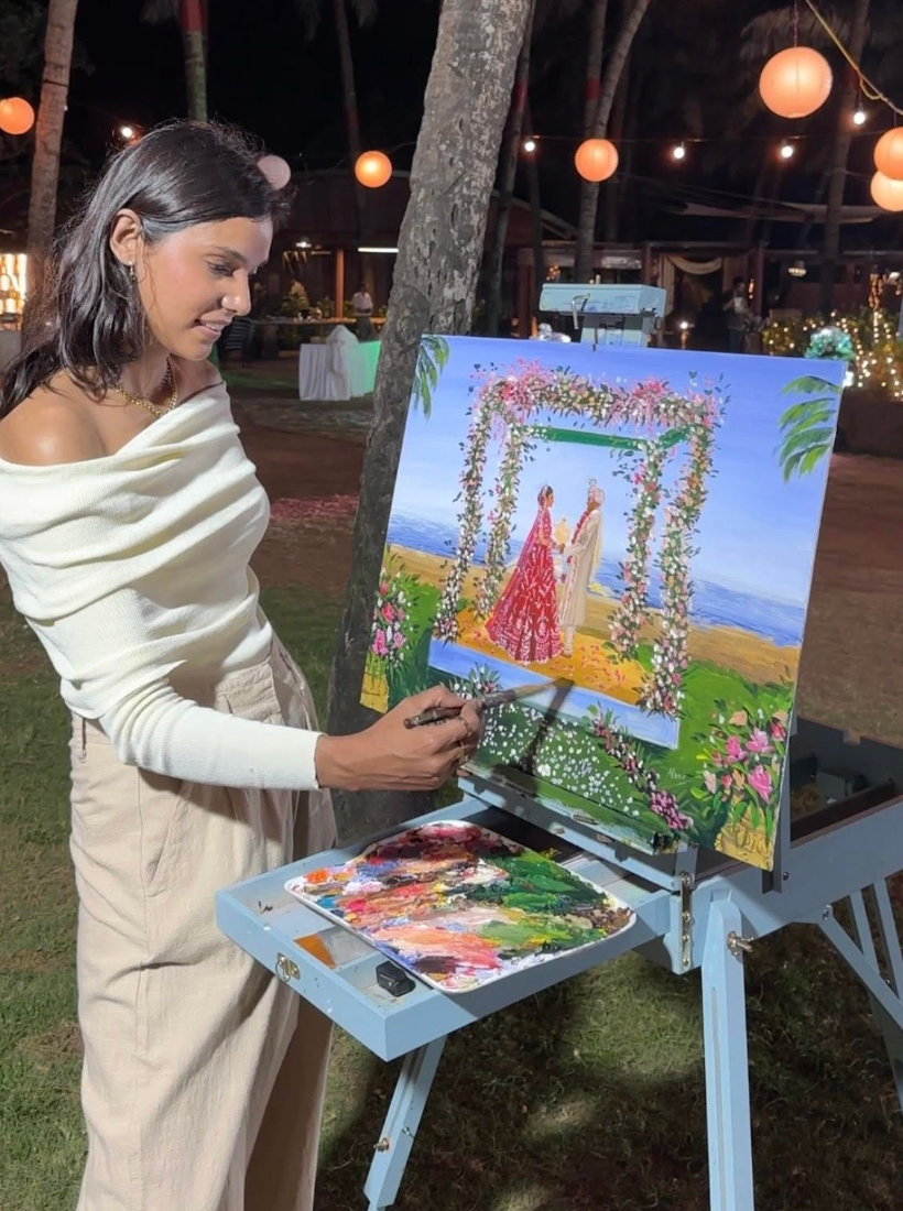 What started as a global trend has now taken root in Indian weddings, with talented local artists popping up across the country, setting up their easels and capturing the pheras, the first dance, or a quiet couple moment in real time. It’s art being made as your story unfolds.